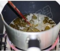 12. 锅内倒多点油,加热,热到用筷子插进去看到有小气泡即可