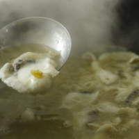 17. 煮好的鱼肉发白没有血色,即可关火装汤。