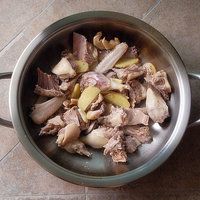 1. 鸭子洗净,斩中等大小块。姜切片,蒜去皮。
