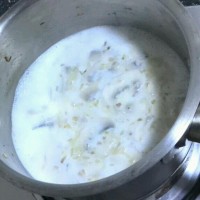 5. 另起一锅放黄油加面粉炒到微黄,将炒好的油面放入汤中小火继续煮5分钟,期间不停搅拌至油面完全溶入汤中,汤汁粘稠。