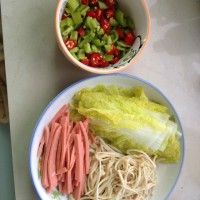 | 金锣王香肠1/2根 | 青红椒、葱丝适量 |