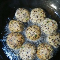 4. 热锅冷油放入炸至金黄即可,炸的时候火别太大,那样颜色漂亮些