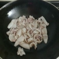 3. 油热下鱿鱼炒卷,放上料酒,白糖,醋,美味鲜酱油 。