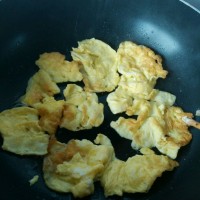5. 煎时可以把鸡蛋分成小块,要注意翻,不然会焦,我喜欢一点点焦的,加点酱油,入味