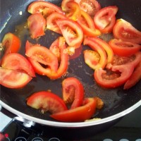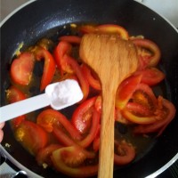 4. 将就底油炒西红柿。