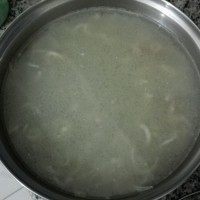 3. 然后把切丝的猪皮放到锅里,加水。这个我一直是根据自己的感觉加的水。我姐说就是比蒸米饭放水多两倍。大概有20~30分钟。沾一些会粘手时就关火。