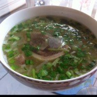 4. 牛肉汤加入适量盐和味素,胡椒粉适量,飘入蒜苗和香菜末,即成为美味牛肉汤,加入炖好的白萝卜片,冬天来一碗驱走寒气。