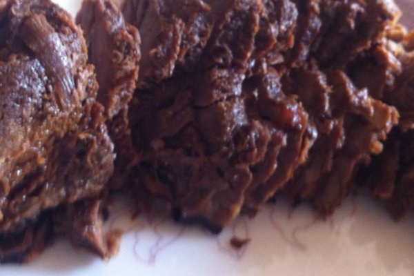 3. 将肉块捞出,切小块放入锅中,加入肉汤适量,加入姜片,草果,盐,糖少量,老抽两勺,生抽一勺,干辣椒,中火炖煮,中间将肉翻面,让其均匀沾酱汁,煮至收汁。出锅放凉后切片。