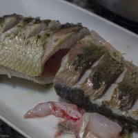 5. 煮八分钟左右,翻面再煮同样的时间,先取出鱼装盘中,再把汤汁淋上鱼身。