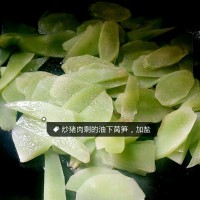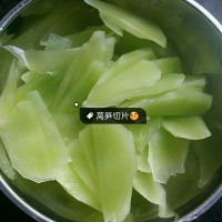 4. 炒猪肉剩下的油下莴笋,加盐翻炒