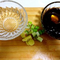 2. 准备腌制酱料:甜面酱1袋,白酒100g,料酒1勺,蜂蜜2勺,五香粉1勺,葱段,姜片。