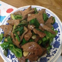 4. 热锅凉油,下入姜片,蒜片煸香,加猪肝,翻炒烹黄酒,再放尖椒,调入生抽,盐味。