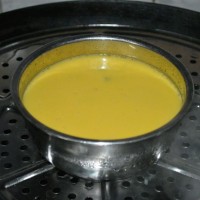 6. 待蛋白皮蛋蒸至完全凝固时倒入蛋黄液继续蒸制(这就是漂亮的黄色)