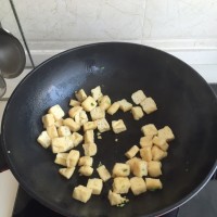 2. 葱末姜末爆香后,倒入豆腐果翻炒