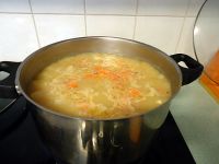 7. 注入适量开水大火煮沸转中火煮至土豆与红萝卜软