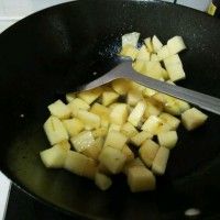 8. 压力锅压肉的时候,重新放油,煎炒土豆。煎至八分熟,土豆绵软,捞出