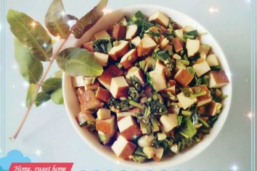 1. 备好花生,将香椿摘去老根洗净,香干洗净