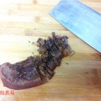 2. 腊肉用碗盛起,加上与腊肉持平的清水,放入微波炉叮4分钟。