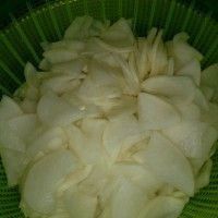 1. 萝卜洗净,切片,加盐,腌制两个小时