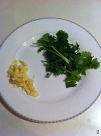 2. 蒜头切末,香菜切段;