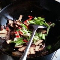 腊肉 200克 蒜苗 300克 青椒 1个 小红椒 4个 豆干子 300克腊肉炒蒜苗正宗湖南菜的辅料: