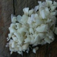 3. 第三步:倒油加热放入蒜末,翻炒几下再倒入腊肉片继续翻炒出油,滴入少许酱油翻炒上色。