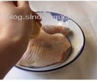 1. 把鸡肉洗干净,挤入一点柠檬汁去腥,不需要半个那么多其实,在撒入胡椒粉,涂抹按 摩均匀