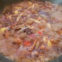 3. 放生抽 老抽 白糖 一点盐 鸡精 花椒 八角 料酒 淀粉 水适量