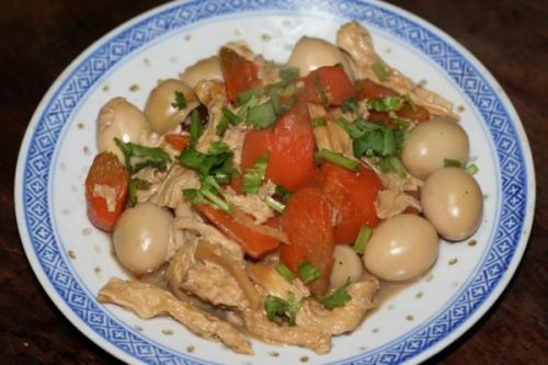 酱油 少许 糖 少许 蘑菇精 少许 素高汤 2碗 香菜末 少许 姜丝 少许 八角 1个胡萝卜鹌鹑蛋焖腐竹的家常做法,胡萝卜鹌鹑蛋焖腐竹怎么做好吃