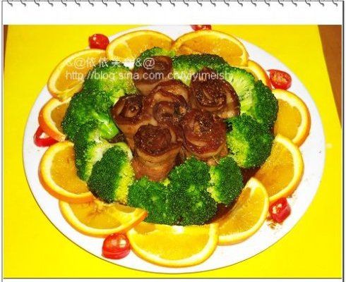 10. 把炖好的玫瑰肉捞起,拆去牙签,摆到盘子中间: