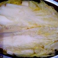 3. 这时把白菜丢进锅里煮,一下别丢太多每一片煮的时间都不能太长。时间过了口感不脆。煮好后摆盘。