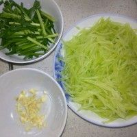 1. 莴笋洗净去皮切切丝,用1/3的盐淹下。