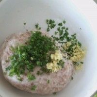 2. 第二步,就是拌肉馅,这道菜好不好吃,这一步很关键。肉馅,葱花,姜末,小虾米,生抽两汤勺,黑胡椒粉2g,盐1g,先搅拌。然后加入一个鸡蛋,搅拌,最后放淀粉一汤勺,可以不放,放了肉不会太老,吃起来滑嫩。