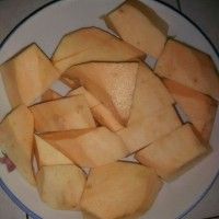 5. 在加粉蒸肉里面的米粉拌均匀盖红薯上即可