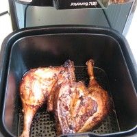 5. 空气炸锅预热5分钟,200度;将两只鸭腿入预热好的炸篮中,时间为20分钟
