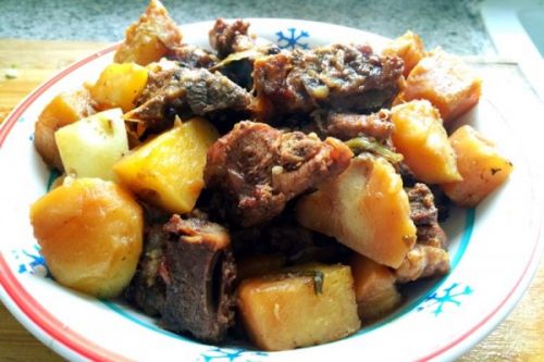 6. 大火烧开之后,关火。转移到炖锅中。再大火烧开之后加入土豆,等大火煮开之后,调整至小火慢炖1个小时左右。(这个过程中要随时过来翻看,以免出现水干糊锅)