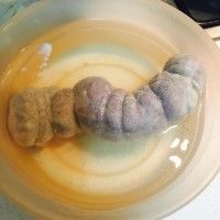 2. 把圆筒的猪肘剪开。