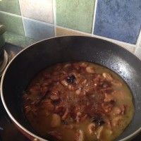 6. 待肉变色浇上酱油 料酒 继续翻炒几下后 加入肉汤莫过猪肉