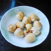 5. 炒锅内放油,烧到七成熟时放入鹌鹑蛋,炸至金黄色捞出;(炸蛋又爆了一个,求解)