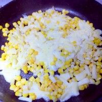 5. 平底鍋加入淡奶油,粟米粒,翻炒