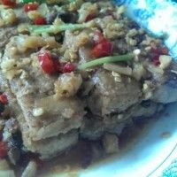 3. 用炸过毛豆腐剩下的油,把配料都倒下去炒香,加盐,再加一点水,烧开,加一汤匙生抽。葱段。把烧好的汁浇在炸好的毛豆腐上面就完成了