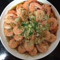 1. 粉丝烫开,摆盘。虾洗干净开背,油里过一下,摆盘。放酱油黄酒,蒜姜放上去,摆葱。开锅倒水蒸一下入味。