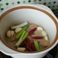 6. 葱姜祘爆香后加入红酸汤,小火熬制一会儿。