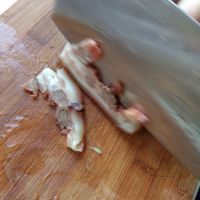 4. 蒜剥皮,用刀背拍扁后,切碎。木耳切丝。