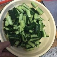 1. 黄瓜洗净切成小段,加适量盐摇匀后腌制30分钟备用