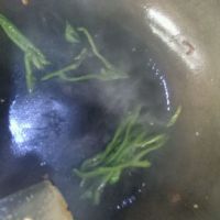 3. 锅内无油,放入青椒丝炒香,炒香后起锅备用