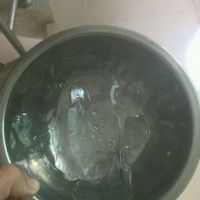 2. 先倒一点点开水,和开它,不要有一坨坨的粉,,,放500kg的水,搅拌好,等水凉了,放冰箱20分钟后可以吃了,夏天的搭档