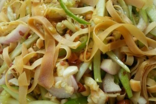 豆腐皮一张 黄瓜一根 洋葱半个 尖椒或彩椒适量夏日凉拌菜的辅料:
