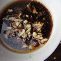 4. 碗中放蒜、醋、生抽、鸡精、盐、香油调匀。