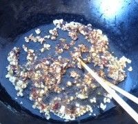 7. 倒入姜蒜末煸香。关火
